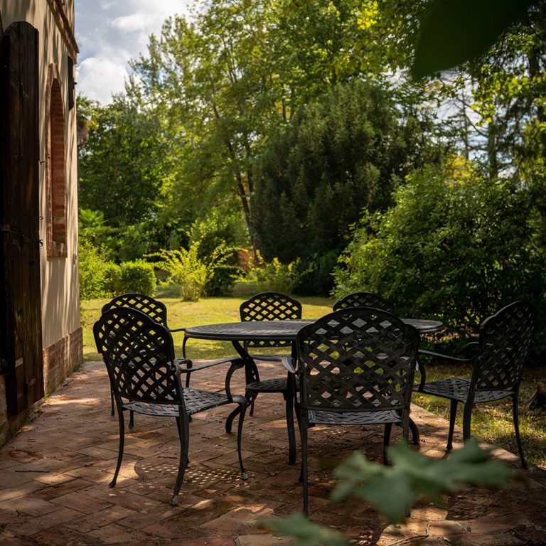 A tranquil patio area adjacent to the kitchen, providing a relaxing place for a glass of wine.